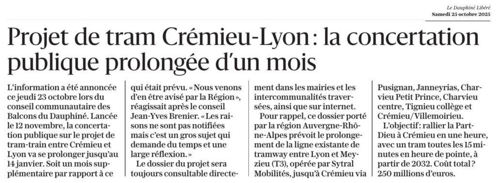Après la réunion de consultation tenue à Crémieu, un article à retrouver sur le site du DL et dans notre dossier presse
